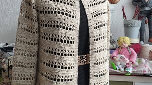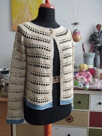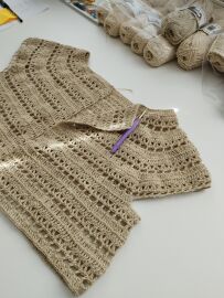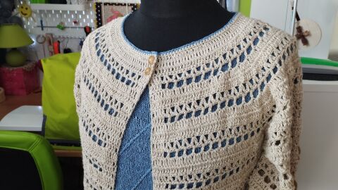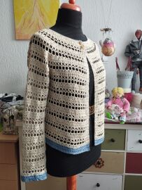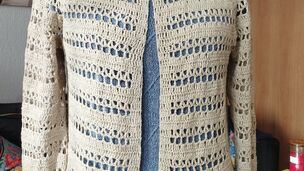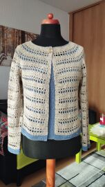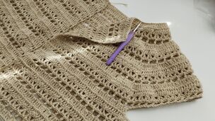 "Velikost S. Oproti návodu jsem tělo háčkovala rovně bez ujímání. Rukávy jsem háčkovala v lícových a rubových řadách, abych zachovala rovný šev."