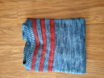 "Jednoduchý svetřík, pletl se krásně 🙂"
