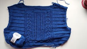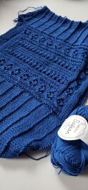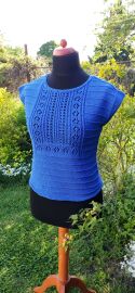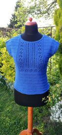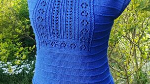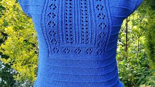 Pletený shora dolů s krajkovým vzorem.