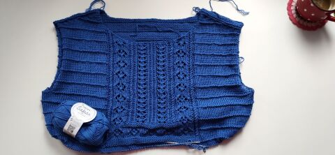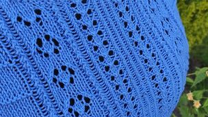 "Pletený shora dolů s krajkovým vzorem.