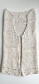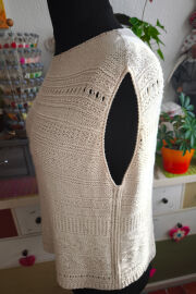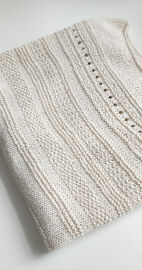 Top je pletený odshora dolů. Na výstřih jsem použila zkrácené řady, vzory jsem vymýšlela v průběhu pletení 😊